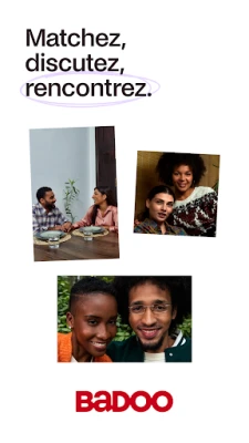 Badoo vous invite à une expérience de rencontre renouvelée, où l'authenticité est reine. Libérez votre vraie personnalité et forgez des liens sincères, qu'il s'agisse de trouver l'amour, de développer de nouvelles amitiés durables ou de simplement partager des discussions enrichissantes. Nous créons un environnement bienveillant et sécurisé, conçu pour que chaque interaction compte, en ligne comme dans la vie réelle. Badoo est l'espace idéal pour explorer vos désirs et rencontrer des personnes qui partagent vos valeurs.