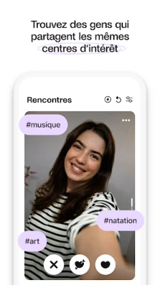 Avec Badoo, découvrez une plateforme où la diversité est célébrée et où toutes les aspirations trouvent leur place. Que vous cherchiez un compagnon de vie, un(e) BFF, ou des échanges spontanés, Badoo s'adapte à toutes les orientations et désirs. Grâce à notre tchat gratuit, aux appels vidéo et à la fonction de proximité, connectez-vous avec des profils vérifiés et des individus qui correspondent précisément à vos intentions déclarées. Le système de swipe intuitif vous permet d'explorer les possibilités à votre rythme, en vous offrant les outils pour exprimer pleinement qui vous êtes, des "Clips" vidéo personnalisés à vos préférences claires.