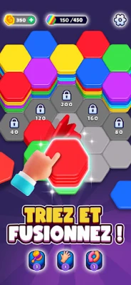 Hexa Sort est un jeu de casse-tête de blocs stratégique où la logique est clé. Fusionnez des éléments et résolvez des énigmes astucieuses pour un entraînement cérébral stimulant. Idéal pour mettre vos méninges à l'épreuve avec des défis satisfaisants.