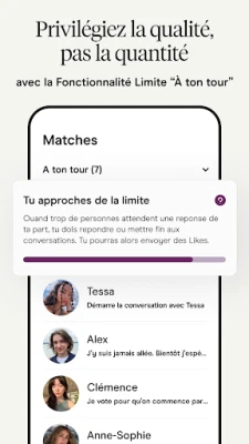 L'engagement de Hinge pour votre succès ne s'arrête pas à la mise en relation. Après l'échange de numéros de téléphone, nous suivons le déroulement de vos rendez-vous, recueillant vos retours pour affiner constamment nos recommandations, vous orientant vers des correspondances toujours plus pertinentes. Cette approche novatrice a valu à Hinge la reconnaissance de la presse, avec Le Daily Mail nous qualifiant d'application incontournable pour l'amour et TechCrunch saluant notre capacité à évaluer le succès réel des rencontres. Pour ceux qui souhaitent intensifier leur quête, Hinge propose des options premium : Hinge+ permet de consulter vos admirateurs et d'envoyer un nombre illimité de "likes", tandis que HingeX débloque des recommandations améliorées et des "likes" prioritaires, accélérant votre chemin vers des connexions extraordinaires.