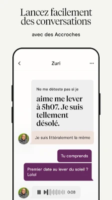 Au cœur de Hinge réside une intelligence de mise en relation inégalée. Nous cernons rapidement vos attentes et préférences, vous présentant uniquement les profils les plus en phase avec votre vision d'une relation. Explorez la personnalité de vos partenaires potentiels à travers des réponses uniques à des questions stimulantes, enrichies d'informations clés sur leurs intentions et le type de relation recherché. Chaque interaction est pensée pour être profonde : les premiers échanges débutent par un "like" ou un commentaire ciblé sur un élément précis du profil, favorisant des conversations plus riches et plus intentionnelles. Pour votre sérénité, la vérification par selfie sur Hinge garantit que vous interagissez avec des personnes authentiques et vérifiées.